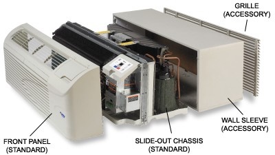 They are extremely energy efficient and fit snugly into outer walls via a wall sleeve, allowing the room's occupant to adjust their heating and air conditioning settings without affecting other units in the building. With optional built-in heat pumps and digital controls,